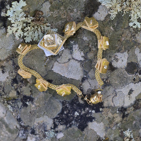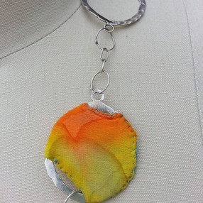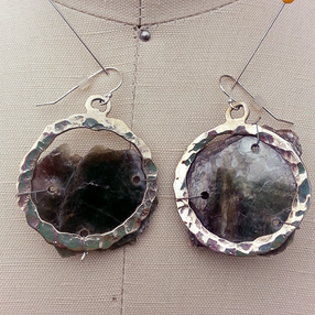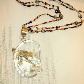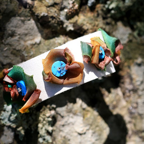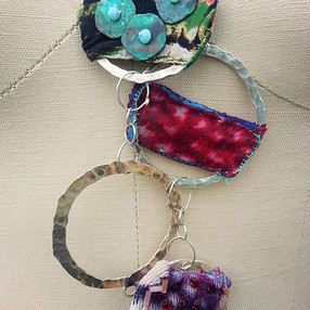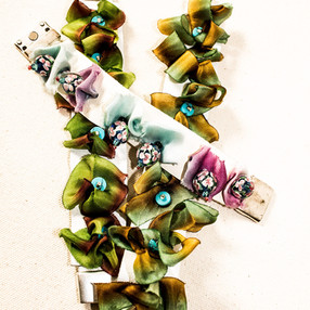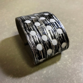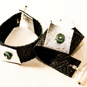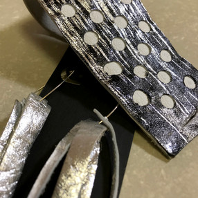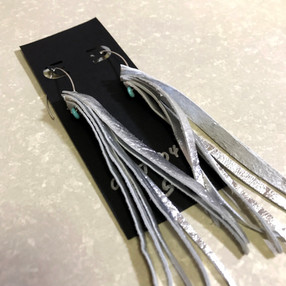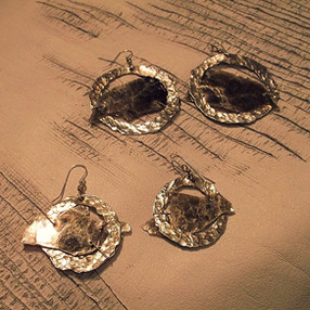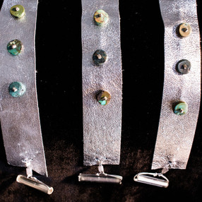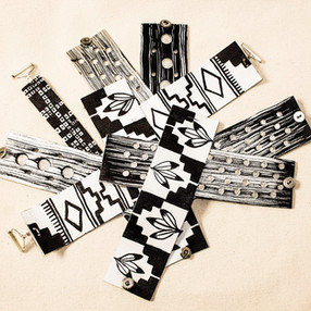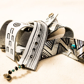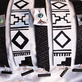 Based on elements from Taos Pueblo culture, such as glimmering mica and adobe Pueblo architecture, Patricia's jewelry uses textiles and leather leftover from other collections so nothing goes to waste. Patricia studied jewelry design at the Institute of American Indian Arts and the Chicago Art Institute. She has developed these collections primarily to be able to outsource cottage industry work to young Pueblo men and women.